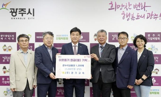 지난 15일 ㈜경기고속 허덕행 상무이사는 광주시청을 방문해 온누리상품권 1천200매(1천200만 원 상당)를, 사회적협동조합 우리나래 박경희 대표는 성금 300만 원을 각각 전달했다.