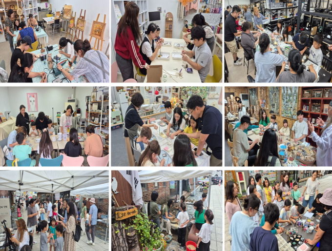 행사에는 버닝클래스, 손뜨개작업실, 3D대장간, 웹툰창작소, 돌하우스, 오산목공소 등 예술촌 입주작가와 외부 도예작가 2명이 참여했다. 프로그램으로는 ▲우드버닝 연필꽂이 ▲손뜨개 도토리 목걸이 ▲3D 동물 무드등 ▲예술촌 풍경 스티커 ▲미니 찻상 메모꽂이 ▲전통 솟대 ▲냉장고 자석 제작 등 다양한 체험이 마련됐다. 또한 도자기 물레 체험과 캐리커처 시연 행사도 함께 진행돼 참여자들의 큰 호응을 얻었다.