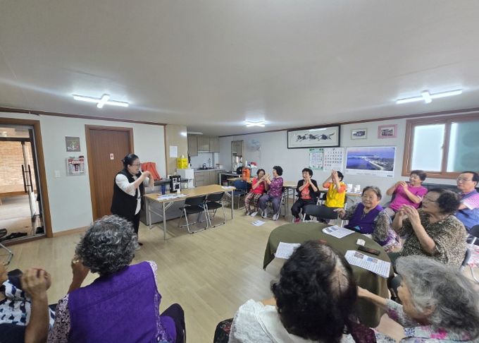 율리경로당을 이용하는 어르신들을 대상으로 진행하고 있는 찾아가는 건강관리 사무소 프로그램은 지난 8월 20일부터 웃음치료, 영양교육, 절주교육, 신체활동 등의 프로그램을 진행했다.