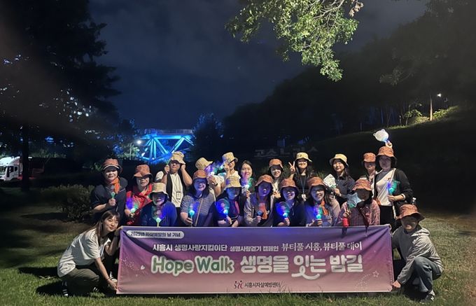 (비전21뉴스) 시흥자살예방센터는 ‘세계 자살예방의 날’을 기념해 생명지킴이단과 함께 9월 16일부터 18일까지 3일간 ‘생명의 빛을 밝히고 함께 걸어가자’는 의미를 담아 ‘희망 걷기(Hope Walk), 생명을 잇는 밤길’이라는 구호로 자살 예방 인식 캠페인을 진행했다.