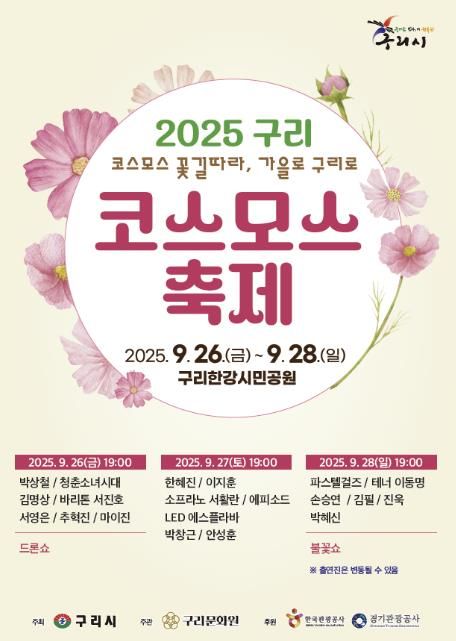 (비전21뉴스) 구리시는 오는 9월 26일부터 28일까지 개최되는‘2025 구리 코스모스 축제’에서 문화누리카드 임시 가맹점을 한시적으로 운영한다고 밝혔다.