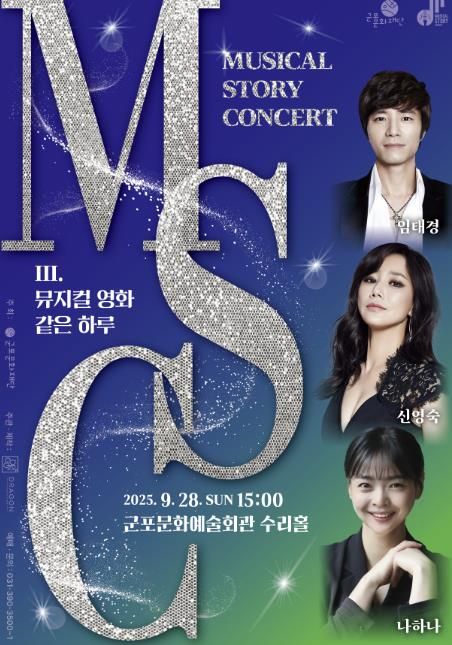 (비전21뉴스) (재)군포문화재단은 오는 9월 28일 오후 3시 군포문화예술회관 수리홀에서 기획공연 “뮤지컬 스토리 콘서트 Ⅲ. 뮤지컬 영화 같은 하루”를 선보인다.