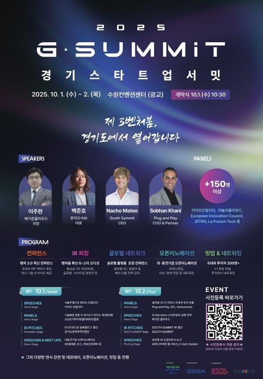 (비전21뉴스) 국내 최고 수준의 글로벌 스타트업 투자 박람회인 ‘경기 스타트업 서밋(G-SUMMIT)’이 오는 10월 1일부터 2일까지 수원컨벤션센터에서 열린다.