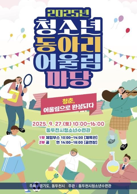 (비전21뉴스) 동두천시는 오는 9월 27일 동두천시 청소년수련관(지행로 95)에서 '2025년 동두천시 청소년 동아리 어울림마당'을 개최한다고 밝혔다.