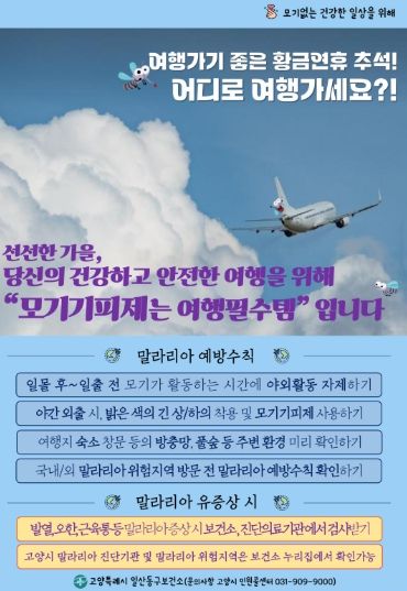 (비전21뉴스) 고양특례시 일산동구보건소는 긴 추석 황금연휴를 맞이해 가족들과 국내외 여행을 가는 시민들의 말라리아 예방수칙 준수를 당부했다.