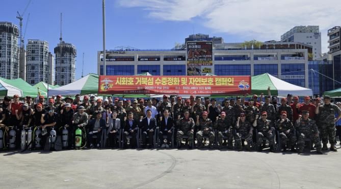 (비전21뉴스) 해병대시흥시전우회는 지난 9월 21일 거북섬마리나 일원에서 수중ㆍ수변 정화 활동과 자연보호 캠페인을 실시했다. 이번 행사에는 해병대시흥시전우회뿐만 아니라 경기도 각 시군 해병전우회 회원들과 시흥도시공사 직원들도 참여해 정화 활동을 지원했다.