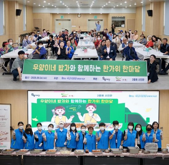 (비전21뉴스) 하남시종합사회복지관은 24일 복지관 4층 대강당에서 ‘우양이네 밥차와 함께하는 한가위 한마당’을 개최했다. 우양재단과 본죽의 후원, ‘2층에 사진관’의 재능기부로 진행됐으며, 명절을 앞두고 사회적 고립이 우려되는 저소득 어르신 60명을 초청해 한가위 점심과 명절 선물, 장수사진 촬영 서비스를 제공했다.
