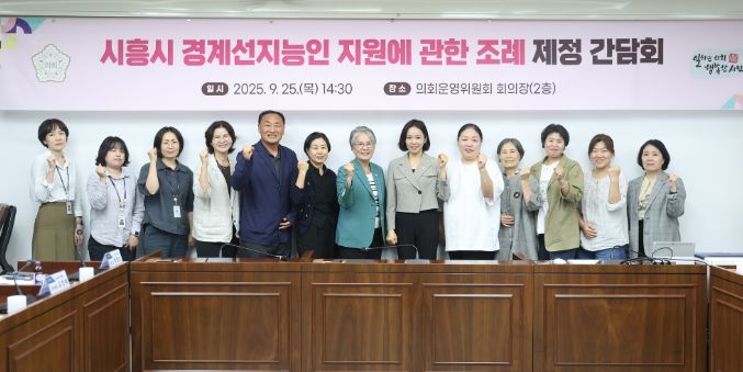(비전21뉴스) 경기 시흥시의회가 9월 25일 의회운영위원회 회의장에서 실효성 있는 경계선지능인 지원을 위한 당사자 부모 및 관계 부서 의견을 청취하고, '시흥시 경계성지능인 지원 조례안'에 대한 의견 수렴을 하고자 간담회를 개최했다.