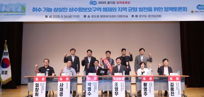 (비전21뉴스) 경기도의회 도시환경위원회 박명수 의원(국민의힘, 안성2)이 좌장을 맡은 '취수 기능을 상실한 상수원보호구역 해제와 지역 균형 발전을 위한 정책토론회'가 26일 오전 11시, 공도읍 행정복지센터 대회의실에서 열렸다. 이번 토론회는 ‘2025 정책토론 대축제’의 일환으로 박명수 의원이 기획하고 경기도의회와 경기도가 공동으로 주최했다.