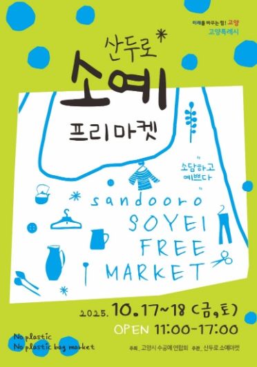 (비전21뉴스) 오는 10월 17일~18일 양일간 오전 11시부터 오후 5시까지 일산동구 산두로 175번길 사재공원 앞 가로수길에서‘산두로 소예(소담하고 예쁘다)마켓’이 개최된다.