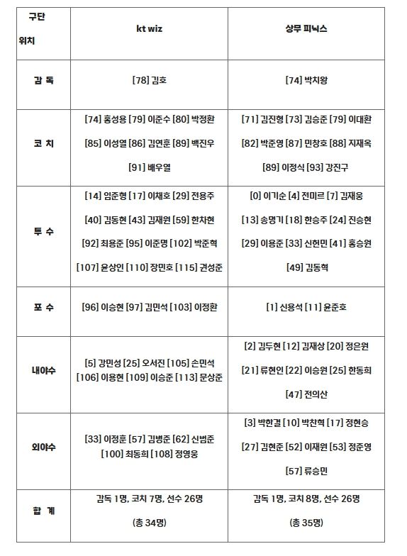 (비전21뉴스) 10월 1일(수) 오후 7시 고척스카이돔에서 개최되는 2025 KBO 퓨처스리그 챔피언결정전에서 맞붙는 KT와 상무의 출장자 명단이 발표됐다.