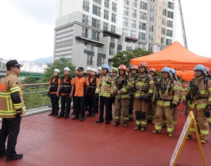 훈련은 사전 시나리오 없이 아파트 내 화재 발생을 가정해 진행했으며, 긴급구조지휘대 지원반을 포함한 현장지휘단, 119구조대, 평내119안전센터 대원들이 참여해 각자의 임무를 수행했다. 현장에서는 지휘소 설치, 자원 지원, 안전 관리, 통신 체계 유지 등 재난대응 절차 전반을 실제 상황처럼 점검했다.