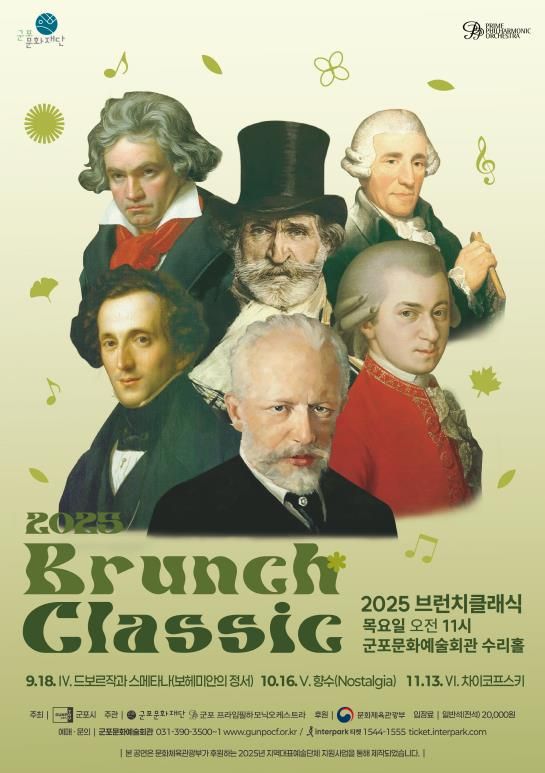 ‘2025 브런치클래식’은 군포문화재단과 군포 프라임필하모닉오케스트라가 주관하여 각 달마다 어울리는 다양한 클래식을 오케스트라 연주에 해설을 곁들여 시민들에게 평일 오전, 수준 높은 클래식 감상 기회를 제공한다.