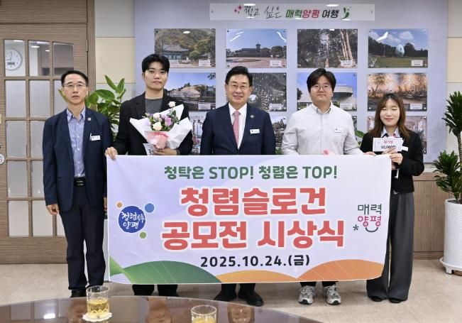 (비전21뉴스) 양평군은 지난 24일 ‘2025 청렴 슬로건 시상식’을 개최하고, 공정하고 투명한 공직문화 확산을 위해 추진한 ‘청렴 슬로건 공모전’의 수상작을 발표했다.
