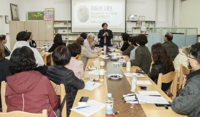 최 시인은 “시는 운율을 갖춘 다듬어진 언어이며, 질서와 의식이 깃든 힘 있는 말이다. 나아가 시는 신과 통하는 언어라고도 할 수 있다”고 강조했다.