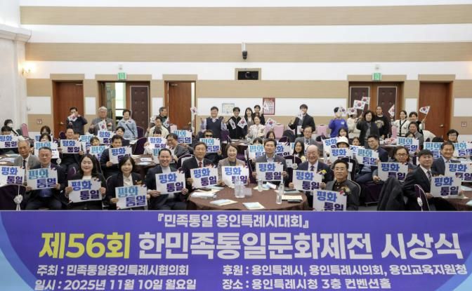 (비전21뉴스) 용인특례시는 10일 시청 컨벤션홀에서 민족통일 용인특례시협의회 주관으로 ‘민족통일 용인특례시대회와 제56회 한민족통일문화제전 시상식’이 열렸다고 밝혔다.