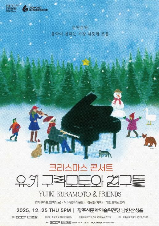 (비전21뉴스) (재)광주시문화재단은 오는 12월 25일 오후 5시, 광주시문화예술의전당 남한산성홀에서 ‘2025 크리스마스 콘서트 '유키 구라모토와 친구들'을 개최한다.