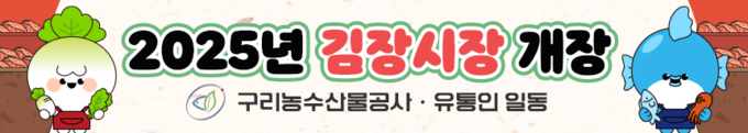 (비전21뉴스=정서영 기자) 구리농수산물도매시장(이하 도매시장)이 김장철을 맞아 오는 18일(화)부터 28일(금)까지 김장시장을 개장한다.