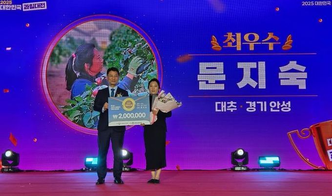 (비전21뉴스) 농림축산식품부 주최, 한국과수농협연합회 주관으로 하는 ‘2025 대한민국 과일산업대전 대표과일선발대회’에서 안성시가 2023년부터 대추부문에서 최우수상, 우수상을 수상하여 3년 연속 대추부문 최고자리에 올랐다. 수상자로 문지숙 대표가 최우수상(농림축산식품부장관상)으로 선정됐고, 조재곤 대표가 우수상(산림청장상)으로 선정됐다.