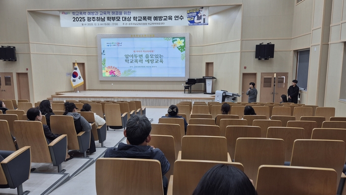 (비전21뉴스=정서영 기자) 광주하남교육지원청(교육장 오성애)은 12월 3일 광주하남지역 학부모를 대상으로 학교폭력 예방 역량 강화를 위한 연수를 실시했다. 이번 연수는 가정에서 실천할 수 있는 학교폭력 예방 전략을 전달하고, 실제 사안 발생 시 처리 절차와 교육적 해결 방안을 명확히 이해하도록 돕기 위해 마련됐다.
