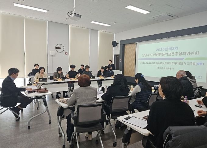 (비전21뉴스) 남양주시는 22일 남양주사회적경제지원센터에서 ‘2025년 제3차 남양주시 양성평등기금운용심의위원회 및 성과공유회’를 개최하고, 올해 추진한 양성평등기금 지원사업의 성과를 공유하며 2026년도 사업방향을 논의했다고 밝혔다.