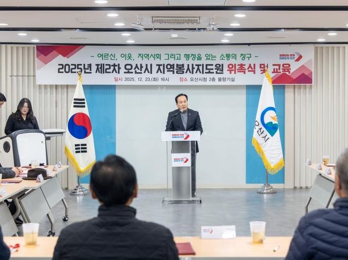 (비전21뉴스) 오산시는 지난 23일 오산시청 물향기실에서 신규 경로당 회장을 대상으로 한 '2025년 지역봉사지도원 위촉식'을 개최했다고 밝혔다.