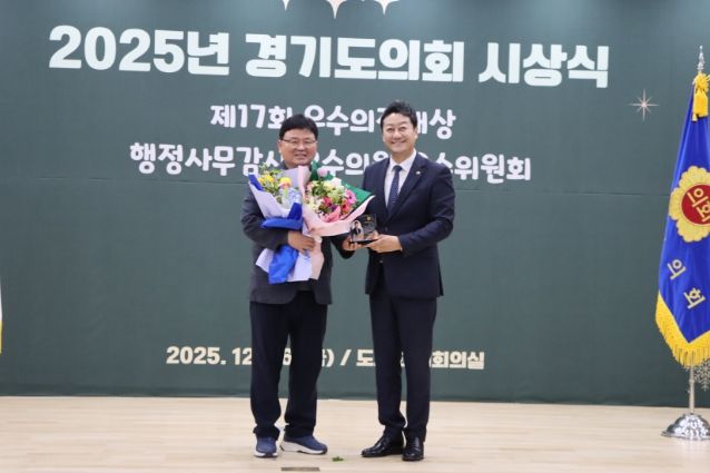 (비전21뉴스) 경기도의회 교육기획위원회 이택수 의원(국민의힘, 고양8)과 성기황 의원(더불어민주당, 군포2)이 26일 열린 2025년 경기도의회 시상식에서 ‘2025년 행정사무감사 우수위원’으로 선정됐다.