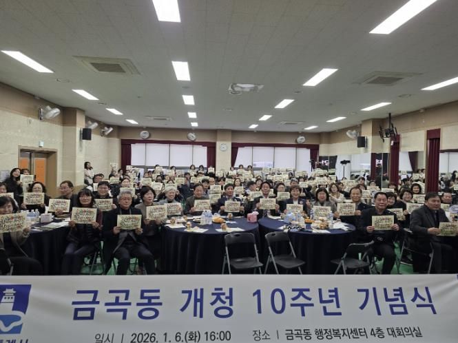 (비전21뉴스) 2026년 개청 10주년을 맞은 권선구 금곡동은 지난 6일 지역구 의원과 주민 등 100여 명이 참석한 가운데 주민자치회 및 통장협의회와 함께 10주년 기념행사를 개최했다.