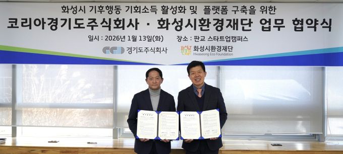 (비전21뉴스) 경기도주식회사는 13일 경기도 성남시 판교 스타트업캠퍼스에서 화성시환경재단과 ‘기후행동 기회소득 활성화 및 화성시 플랫폼 구축을 위한 업무협약’을 체결했다.