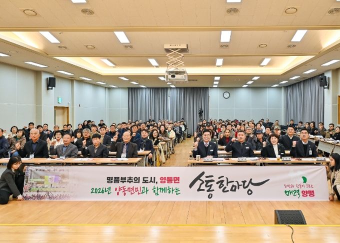 이어 2026년 양동면 도약을 위한 향후 추진 계획으로 △경의중앙선 전철 지평–양동–원주 간 연장 △채움플러스 복합센터 및 기초생활거점 조성사업 △흙향기 맨발길 및 양동면 레포츠공원 조성 △시장별 맞춤형 상권 활성화 및 양평사랑상품권 발행 등 동부권 발전과 민생경제 우선을 위한 주요 정책 방향을 제시했다.
