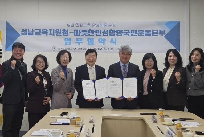 한양수 성남교육지원청 교육장은 "이번 협약이 학교 인성교육의 새로운 전환점이 되기를 기대한다"며 "지역사회의 교육 자원을 적극 활용해 학생·교원·학부모가 함께 참여하는 실천 중심 인성교육을 적극 지원하겠다”고 밝혔다.