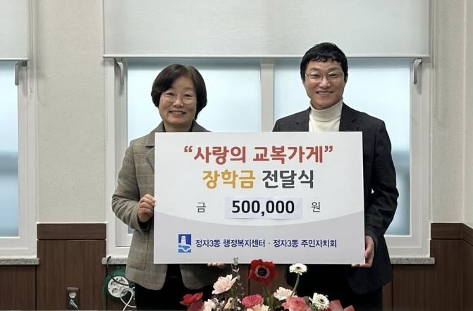 송근숙 정자3동장은 “매년 사랑의 교복가게를 통해 의미 있는 나눔을 실천해 주시는 주민자치회에 감사드린다”며 “기탁해 주신 장학금이 꼭 필요한 학생에게 잘 전달될 수 있도록 하겠다”고 말했다.