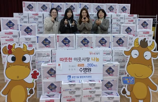 (비전21뉴스) 수병원은 지난 4일, 설 명절을 맞아 어려운 이웃들을 위해 라면 200박스를 우만1동 행정복지센터에 기부하며 이웃사랑을 실천했다.