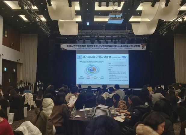 (비전21뉴스) 경기도성남교육지원청은 5일 밀리토피아호텔에서 관내 초·중·고·특수학교 교원 및 지자체 관계자 등 300여 명이 참석한 가운데 ‘2026 경기공유학교 학교맞춤형 성남미래교육(숲에듀) 사업설명회’를 개최했다.