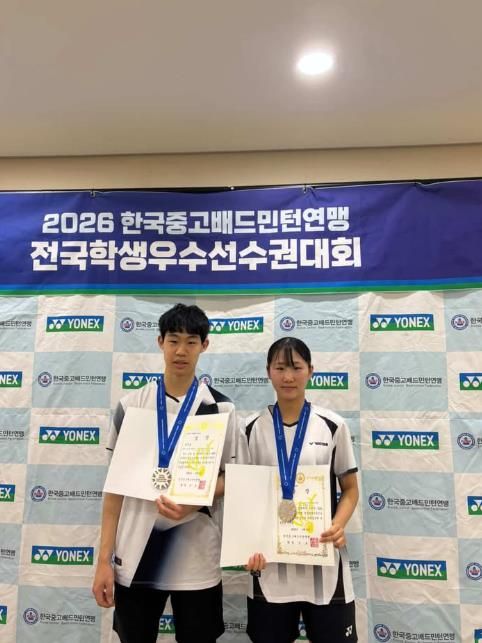 (비전21뉴스) 오산시 사단법인 오산스포츠클럽 소속 배드민턴 선수들이 ‘2026 한국중·고배드민턴연맹 전국학생우수선수권대회’에서 혼합복식 고등부 준우승을 차지하며 전국 무대에서 우수한 기량을 입증했다.