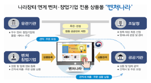 벤처나라는 우수한 창업·벤처기업의 공공구매 판로확대를 위해 조달청에서 구축·운영하는 창업·벤처기업 전용 온라인 상품몰이다.