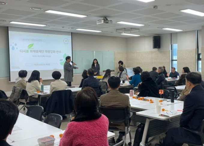 (비전21뉴스) 경기도수원교육지원청은 2월 12일부터 2월 13일까지 이틀간 YBM연수원에서 수원 다시봄 화해중재단 역량강화 연수를 15시간 진행했다.