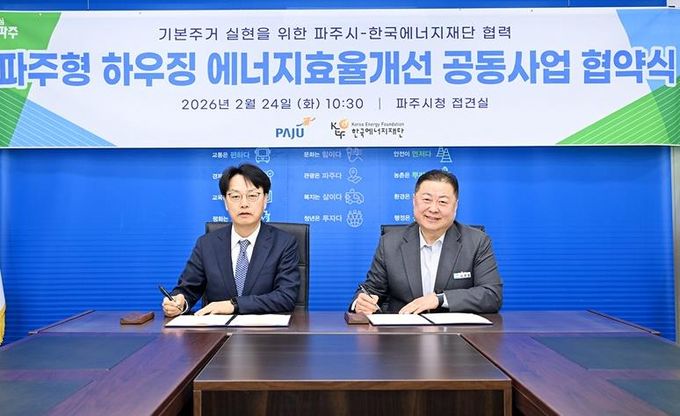 (비전21뉴스) 파주시는 지난 24일 한국에너지재단과 ‘기본주거 실현을 위한 파주형 하우징 에너지효율개선 공동사업’업무협약을 체결했다.