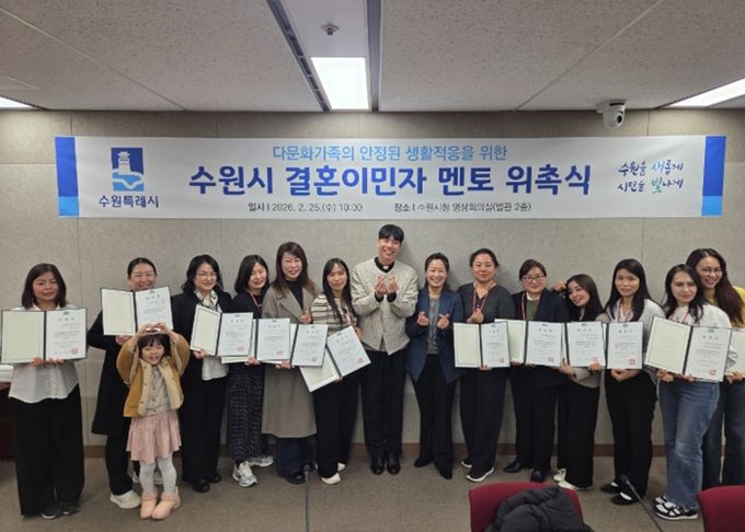 (비전21뉴스) 수원특례시가 25일 시청 영상회의실에서 ‘2026년 결혼이민자 멘토 위촉식’을 열고 선배 이민자 멘토 15명을 위촉했다.