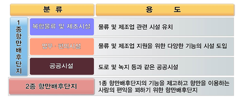 응동지구와 북쪽·남쪽 컨테이너 부두 인근의 2종 항만배후단지 부지와 업무편의 시설 부지의 비중을 줄이고 기업이 필요로 하는 복합물류 및 제조시설 부지를 확충했다.