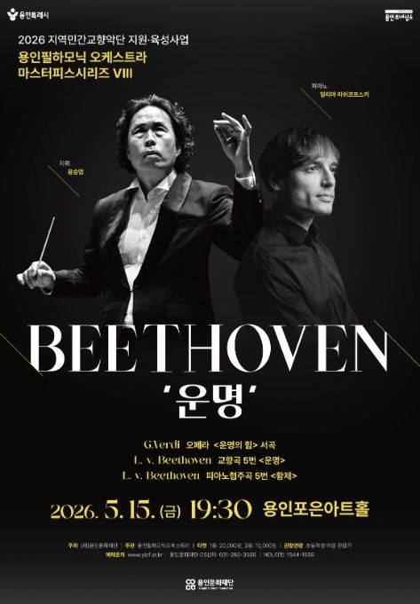 (비전21뉴스) 용인문화재단은 오는 5월 15일 오후 7시 30분 용인포은아트홀에서 ‘2026년 지역민간교향악단 지원·육성사업’의 첫 공연으로 용인필하모닉오케스트라의 기획공연 '마스터피스 시리즈 Ⅷ - 베토벤 ‘운명’'을 선보인다.
