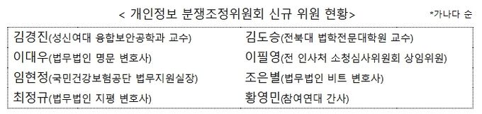 개인정보 분쟁조정위원회 신규 위원 8명 위촉