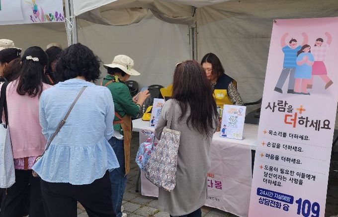 이날 행사에서는 ▲정보무늬(QR코드)를 활용한 자살예방 인식도 조사 ▲자살예방 상담전화 ‘109’ 홍보 배너 전시 ▲평택시정신건강복지(자살예방)센터 안내 및 홍보 안내문 배부 등 다양한 프로그램이 운영됐다. 특히 농업생태원 꽃나들이 축제를 찾은 시민들의 참여를 유도해 자살 예방과 생명 존중의 중요성을 자연스럽게 알리는데 주력했다.