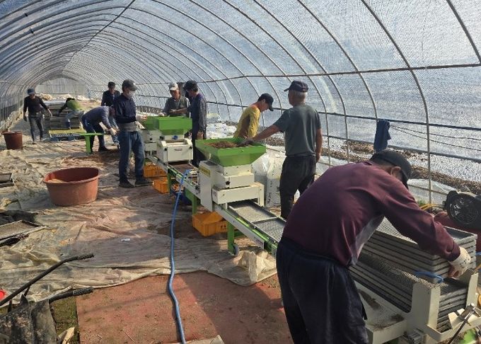 이번 기금사업을 통해 지원받은 육묘 파종기는 모판 투입기부터 모판 적재 이송기까지 장착되어 파종작업의 전 과정을 일괄 자동화로 추진할 수 있어 기존 파종작업의 필수 인력을 9명에서 6명으로 줄일 수 있는 노동력 절감 효과가 있었으며, 기존 육묘 작업량이 시간당 600장 내외였던 것에 반해 모판 작업량을 자유롭게 조절할 수 있어 시간당 800~1200장까지 작업이 가능해지는 등 작업의 효율성도 극대화할 수 있어 참여 회원들의 만족도가 높았다.