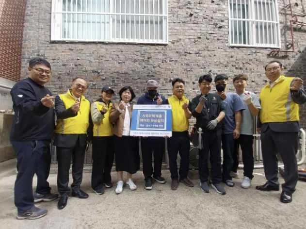 (비전21뉴스) 지난 23일 수원시 권선구 호매실동 지역사회보장협의체는 업무협약을 맺은 수원남부로타리 클럽과 주거환경개선 특화사업의 일환으로, 반지하 빌라에 거주하는 취약계층 어르신 댁에 에어컨을 설치했다.