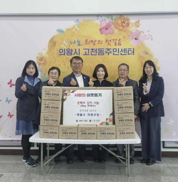 최미옥 고천동장은“매년 어려운 이웃들을 위한 후원을 아끼지 않고 계시는 원불교 의왕 교당에 감사드린다”며 “정성과 사랑이 담긴 김치를 관내 독거노인 및 저소득 가정에 정성껏 전달하겠다”고 전했다.