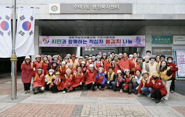 (비전21뉴스) 대한적십자사봉사회 구리시협의회는 지난 23일 수택3동 행정복지센터 1층 광장에서 '2026년 시민과 함께하는 적십자 봄김치 나눔’행사를 실시했다고 밝혔다.