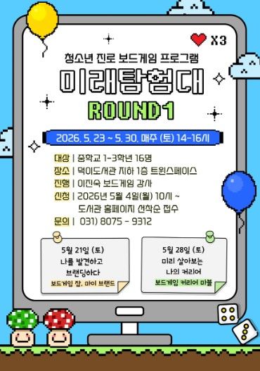 (비전21뉴스) 고양특례시 덕이도서관은 청소년들이 보드게임을 통해 자신의 적성과 흥미를 발견하고 미래 진로를 설계할 수 있도록 돕는 ‘미래탐험대 ROUND1’을 운영한다고 24일 밝혔다.