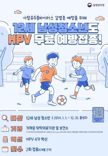 이번 지원 확대에 따라 2014년생(2014.1.1.~2014.12.31. 출생) 남성 청소년은 지정된 위탁의료기관에서 HPV 4가 백신을 무료로 접종받을 수 있게 됐다.