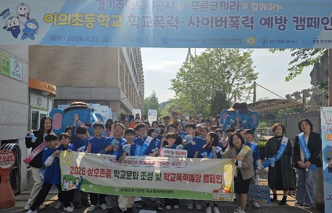이번 캠페인은 최근 급증하는 청소년 사이버폭력 사안에 대응하고 건강한 디지털 시민 의식을 함양하기 위해 마련됐으며, 수원교육지원청을 비롯해 경기주택도시공사(GH), 푸른나무재단(푸른코끼리), 이의초 학부모회 관계자 등이 참여했다.